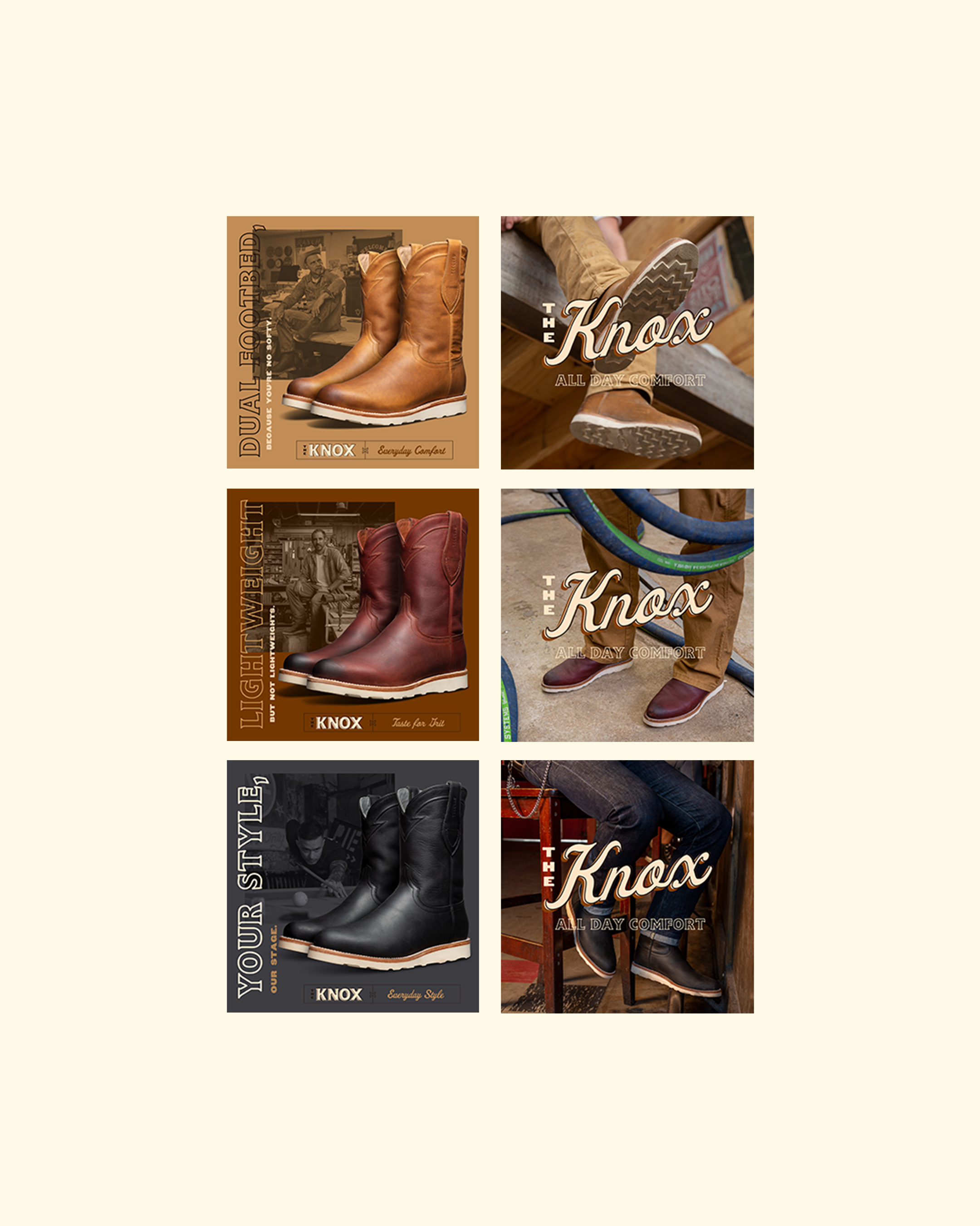 I led the creative strategy, art direction, and design for the launch of The Knox, crafting a bold storytelling campaign that connected across e-commerce, social, paid media, and retail. The campaign exceeded launch expectations, drove strong engagement, and helped solidify The Knox as a go-to style in the Tecovas lineup.